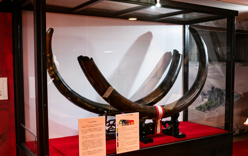 ヒトと関係の深い絶滅動物、マンモスの牙を展示