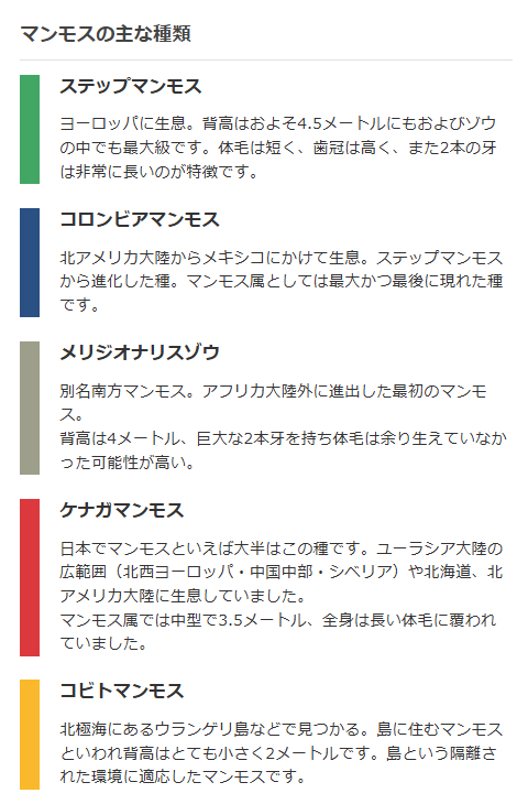 実際にはマンモスは大小数種類あり、シベリア以外のユーラシア大陸はもとより、アフリカ大陸や南アメリカ大陸に広く生息していました。特に南北アメリカ大陸に広く生息していました。